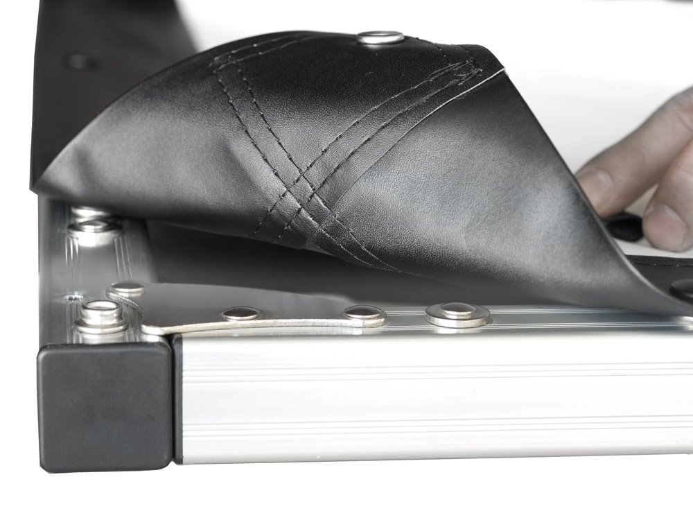 Manuální plátno s úhlopříčkou 200" a bílou konstrukcí. Vhodné pro projektory se standardní projekční vzdáleností.