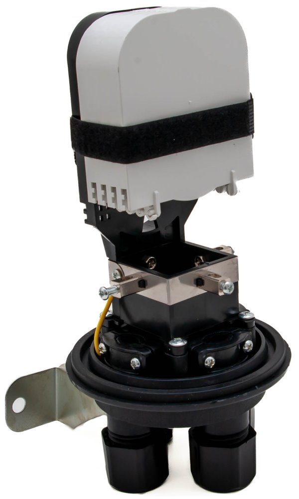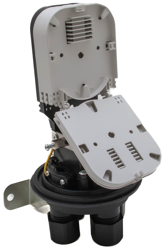 Vodotěsná spojka/rozvaděč, hrncového typu. Pro podzemní a nadzemní instalaci, součástí je kompletní instalační příslušenství včetně optických kazet. Maximální kapacita pouzdra je 24 vláken (4 kazety po 6 svarcích).