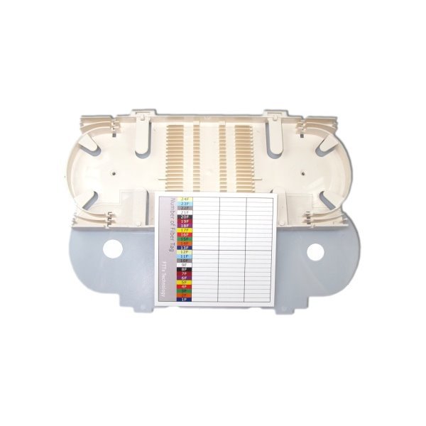 Plastová kazeta pro uchycení 24 svarků, umísťuje se do optických van a rozvaděčů.