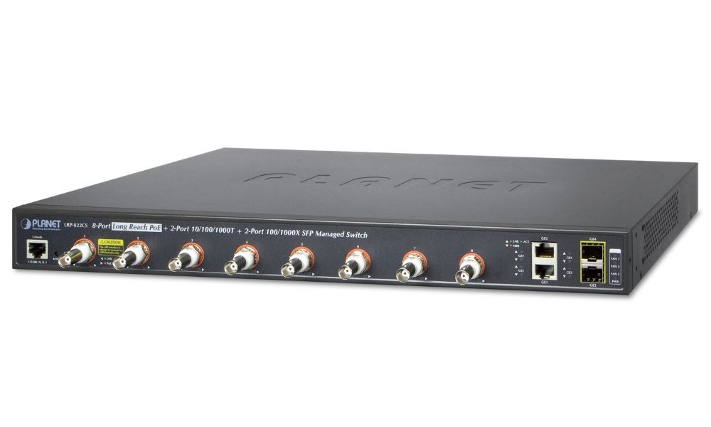 Koaxiální spravovatelný přepínač s 8 porty jako řešení prodloužení segmentů ethernet včetně zvětšení dosahu napájení PoE (power over ethernet) ze 100m až na 400m po koaxiálním vedení včetně zachování napájení IEEE 802.3at zařízení na konci vedení nebo až 1200m bez PoE napájení. Slave klientské extendery(LRP-101CE) lze řetězit/pospojovat až 4 jednotky na jednom injektor portu.