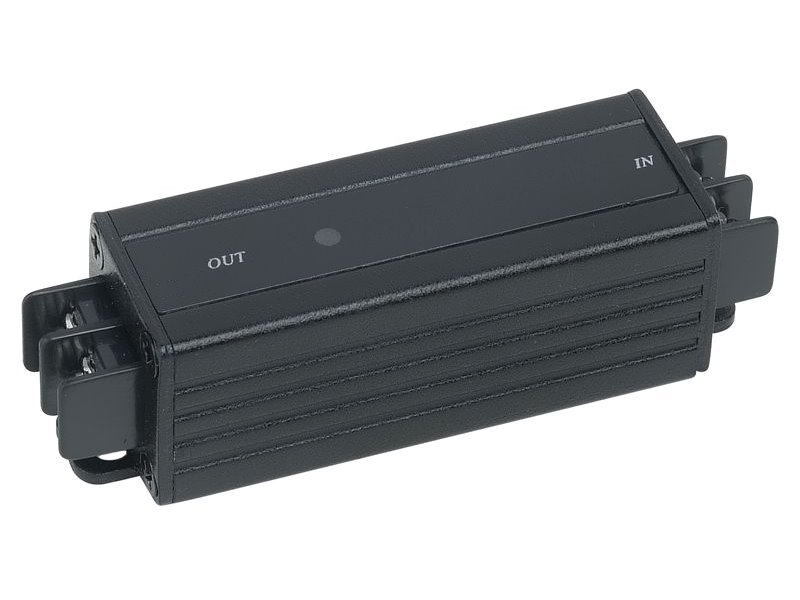 Konvertor napětí se stabilizovaným výstupem 12 V (2 A). Montážní otvory pro instalaci na zeď.