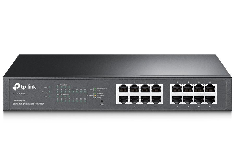 TL-SG1016PE, který lze použít jako stolní nebo jej instalovat do racku, má 16 gigabitových portů, z nichž 8 podporuje standard PoE+ (IEEE 802.3af/at). Switch poskytuje jednoduchý způsob rozšíření kabelové sítě přenosem napájení a dat přes jediný ethernetový kabel.