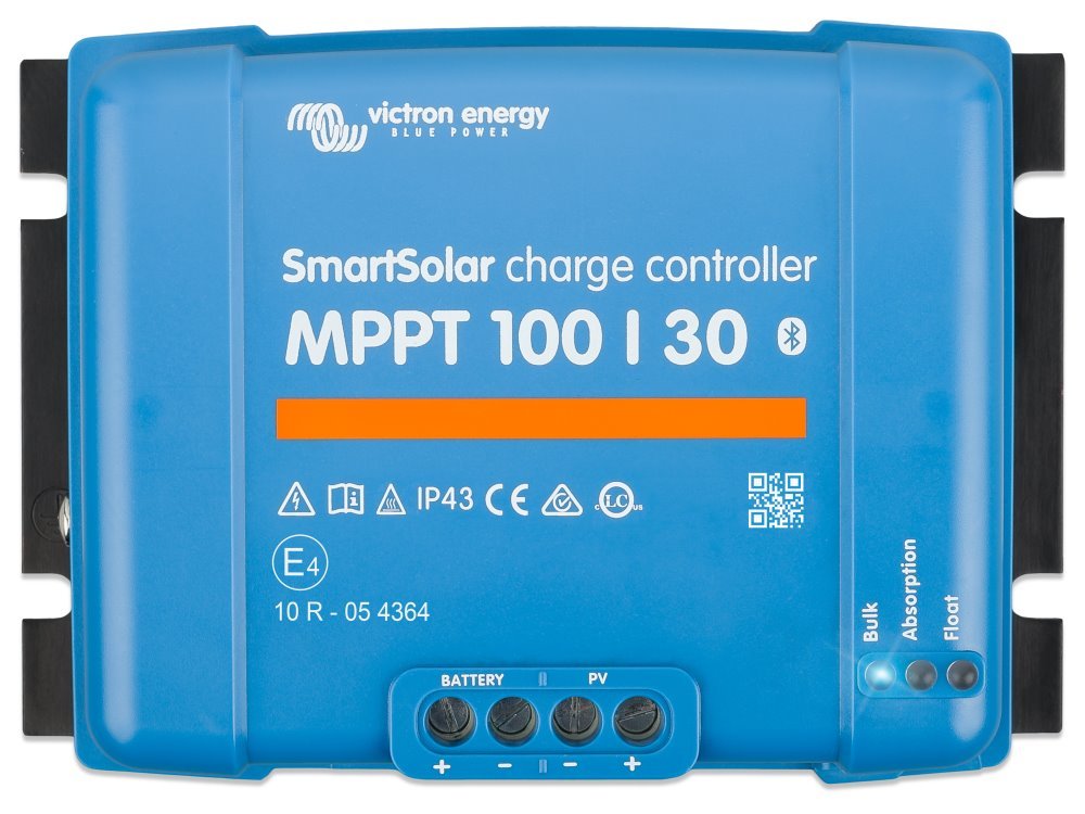 Robustní a rychlý MPPT regulátor pro náročné podmínky s napětím panelů až 100 V, maximální nabíjecí proud 30 A. Baterie 12/24 V, FV max. 440/880 Wp. Vestavěné Bluetooth a VE.direct rozhraní.