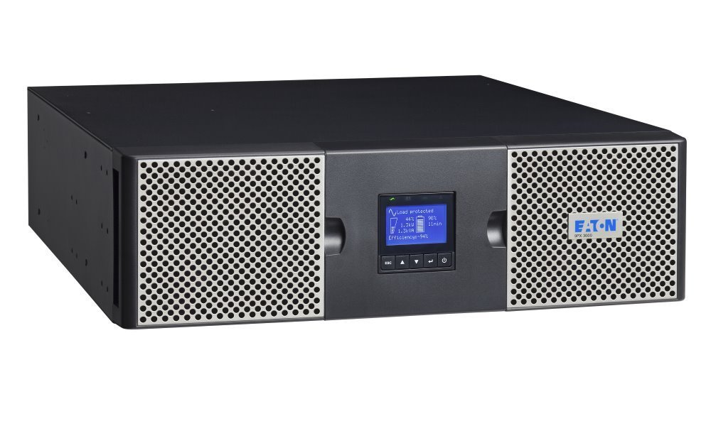 Vysoce výkonná on-line UPS s údržbovým bypassem a s dvojitou konverzí Eaton 9PX poskytuje spolehlivou ochranu a záložní napájení pro malá a střední datová centra, IT, datové sítě, datová úložiště a telekomunikace, infrastrukturu, průmysl a zdravotnictví. Průběžně monitoruje podmínky napájení, reguluje napětí a frekvenci elektrické sítě ale také měří spotřebu energie. Statický bypass umožňuje zachování provozu i v případě vnitřní poruchy. Baterie jsou vyměnitelné za provozu z čelního panelu bez nutnosti vypínání kritických systémů, za chodu je možné také přidat až 12 externích baterií. Nový grafický LCD displej poskytuje přehledné informace o stavu jednotky UPS a měření na jedné obrazovce. UPS 9PX nabízí sériové rozhraní, USB a reléové kontakty pro připojení plus slot pro přídavnou kartou. Záložní zdroj nabízí funkci vzdáleného vypnutí. Umístění je možné do Racku 440 (19"), výška jednotky je 3U, nebo jako Tower, samostatně stojící.