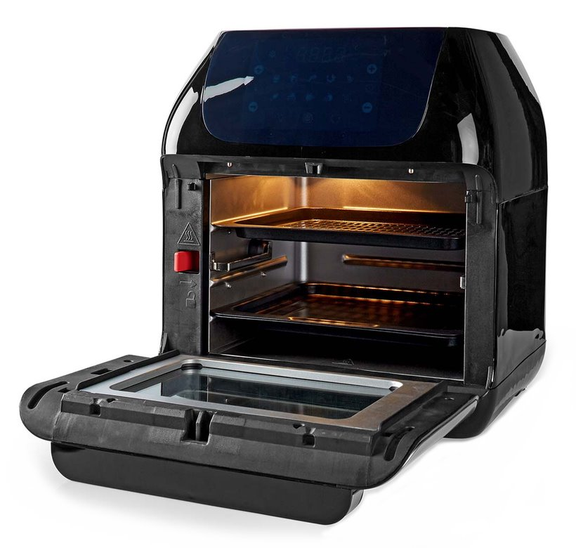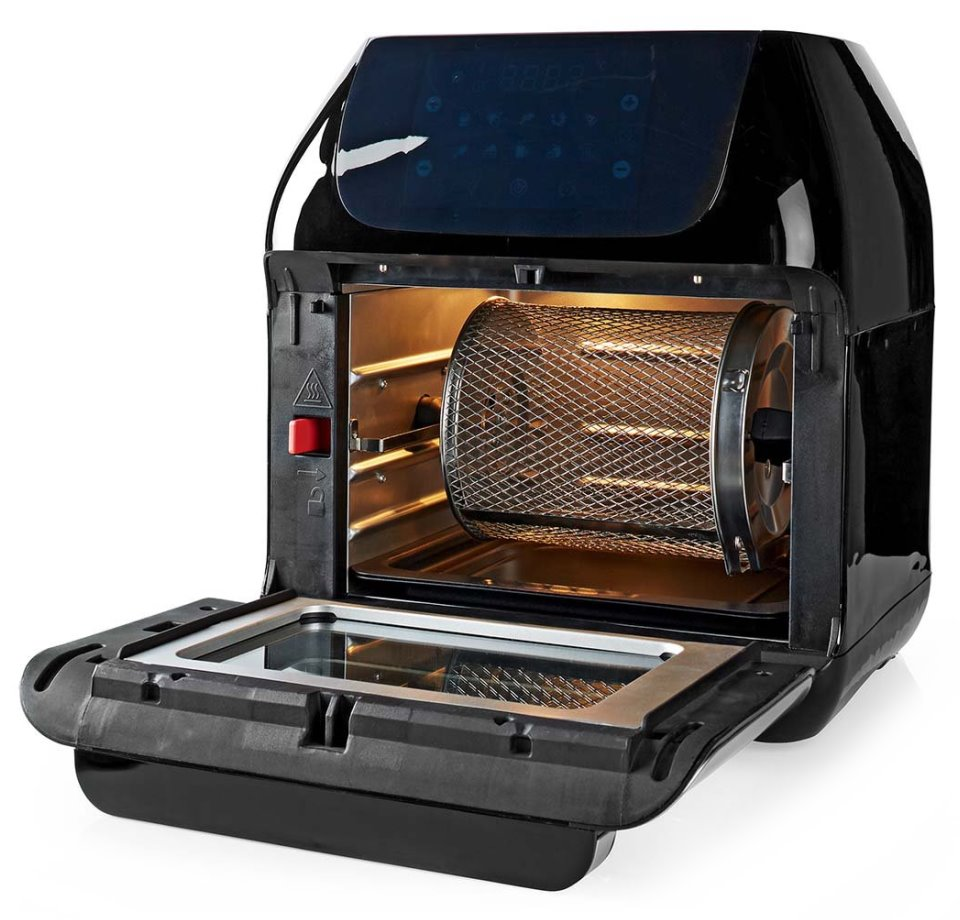 Díky objemu vnitřního prostoru 12 litrů pojme trouba/fritéza Nedis KAAFO300EBK velké množství potravin nebo rozměrná jídla, jako je pizza, koláč apod. Speciálně pro hranolky je k dispozici praktický košík, díky kterému budou hranolky opečené dozlatova rovnoměrně a ze všech stran bez námahy. Všestranné použití podporuje rovněž digitální displej v přední části, na kterém rychle a jednoduše nastavíte jeden z 9 programů vaření a máte vystaráno.