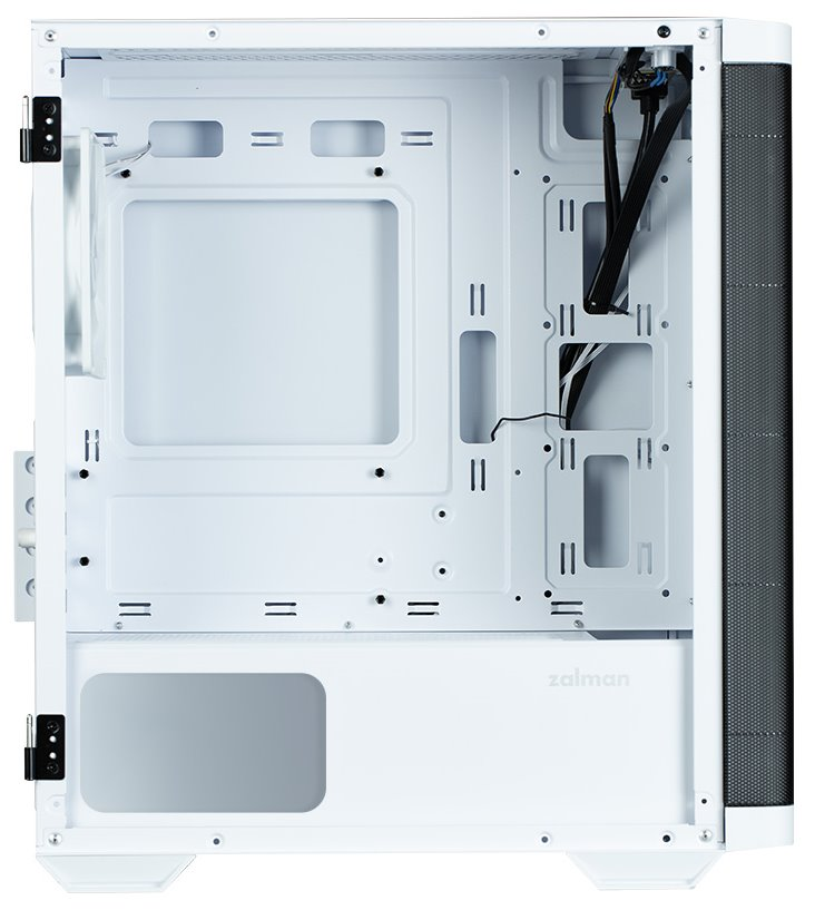 V základu je skříň ZALMAN White osazena čtyřmi ventilátory s ARGB podsvícením, do vnitřního prostoru se vměstná například také výměník vodního chlazení, chladič CPU a samozřejmě grafická karta. Boční strana umožňuje snadný přístup do vnitřku skříně a snadnou výměnu komponent.