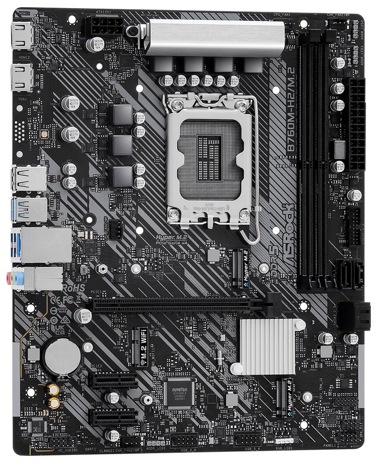 Základní deska ASRock B760M-H2/M.2, která podporuje procesory moderní procesory Intel 12., 13. a 14. generace. Výbava dále obsahuje potřebnou konektivitu pro rozšíření, sloty pro operační paměť typu DDR5 nebo podporu pro polychromatické RGB osvětlení.