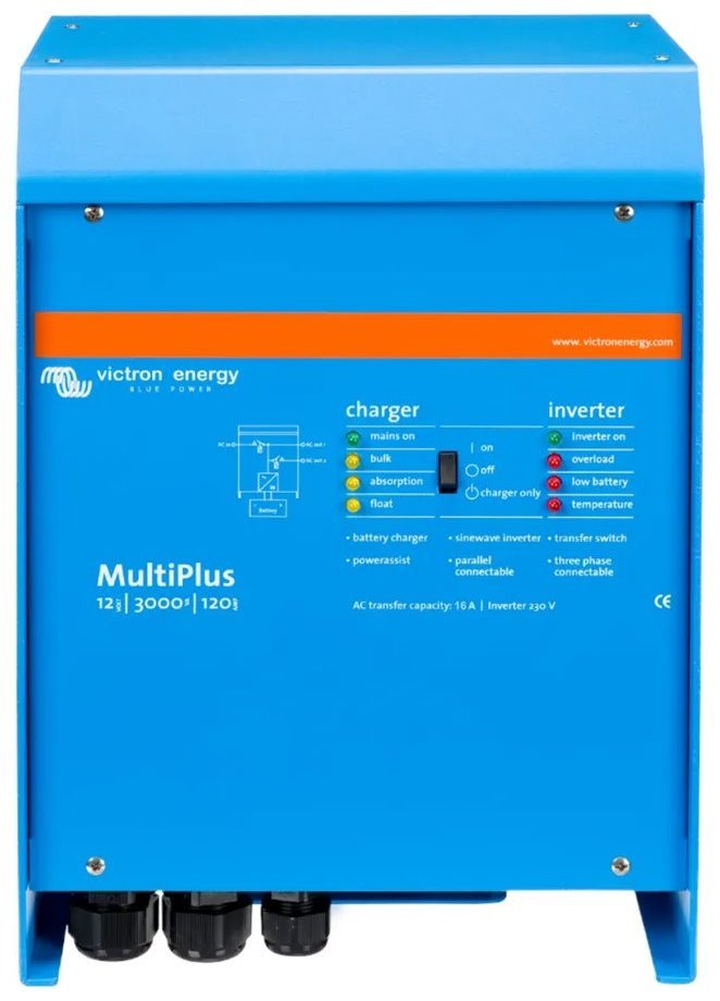 Victron MultiPlus je kombinací střídače a nabíječky v jednom elegantním balení. Jeho řada funkcí zahrnuje čistě sinusový měnič, adaptivní nabíjení, hybridní technologii PowerAssist a další funkce pro integrace do různých typů systémů.