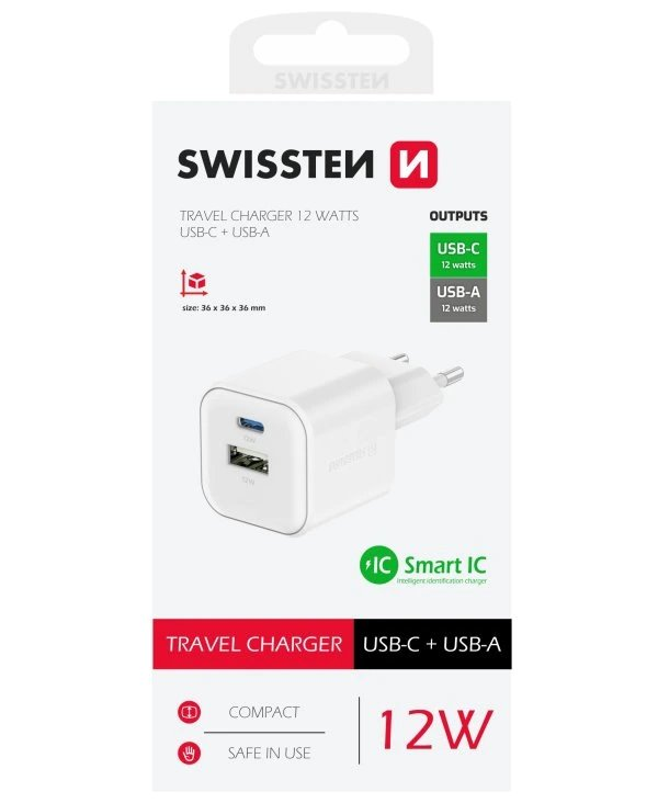Univerzální napájecí adaptér s výkonem až 12 W. Pro nabíjení zařízení je k dispozici jeden konektor USB-C a jeden konektor USB. Použitý protokol SMART IC zajistí identifikaci a ochranu vašeho zařízení. Samozřejmostí je ochrana proti zkratování, přepětí, přetížení nabíjení a vysoké teplotě.