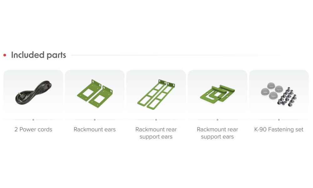 Porty: 20× U.2 NVMe, 2× M.2 SATA, 2× 100G QSFP28, 4× 25G SFP28, 4× 10G SFP+, 2× 10GbE RJ-45, 1× SFF-8644, 1× USB 3.0, 1× USB 2.0, 1× RJ-45 konzolový port, 1× RJ-45 management port