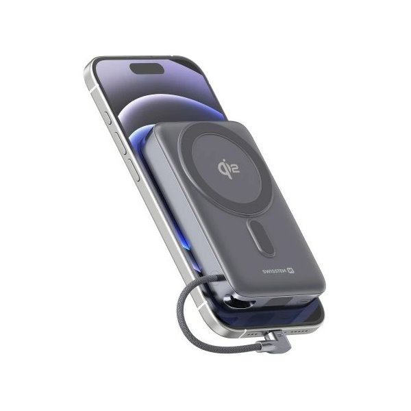 Powerbanka SWISSTEN kombinuje bezdrátové nabíjení Qi2 s magnetickým uchycením MagSafe a kabelové nabíjení přes USB-C s výkonem až 35 W. Kapacita 10000 mAh postačí na několikanásobné nabití smartphonu, přičemž díky podpoře protokolů Power Delivery a PPS zvládne napájet i tablety či notebooky.