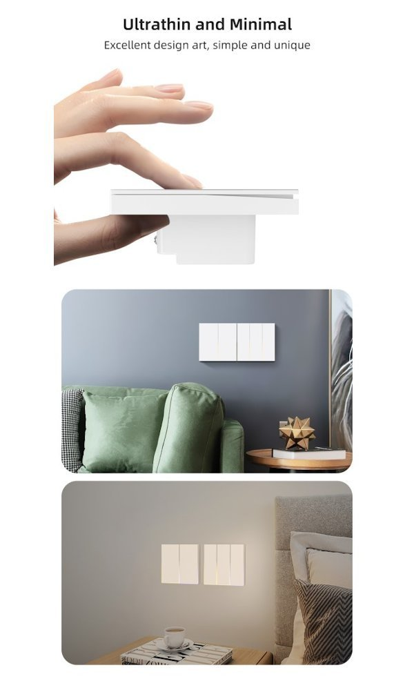 Instalace je snadná do standardní elektroinstalační krabice podle EU specifikace. Vypínač podporuje maximální zatížení 800 W s omezením na maximálně 2 LED světla. Kompatibilita s Apple Siri zkratkami a systémy TUYA a LIDL zajišťuje široké možnosti integrace do stávající chytré domácnosti.