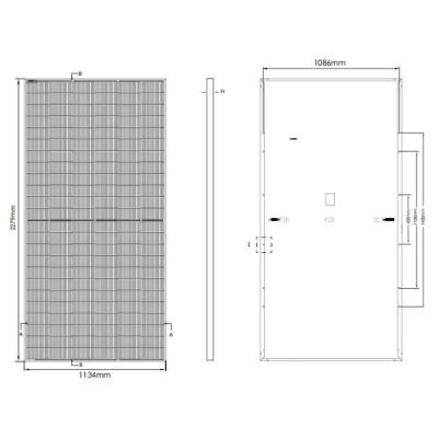Panel je navržen pro provoz v náročných klimatických podmínkách s provozním teplotním rozsahem -40 až +85 °C. Tvrzené sklo o tloušťce 3,2 mm chrání články před mechanickým poškozením a povětrnostními vlivy. Černý hliníkový rám zajišťuje pevnost konstrukce a snadnou montáž.