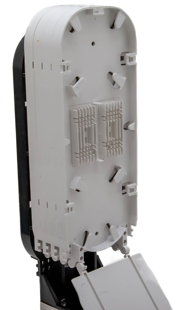Vodotěsná optická spojka, zemní/zeď/stožár, 96 vláken 4x12x2, 4 prostupy, matice, 415x206mm
