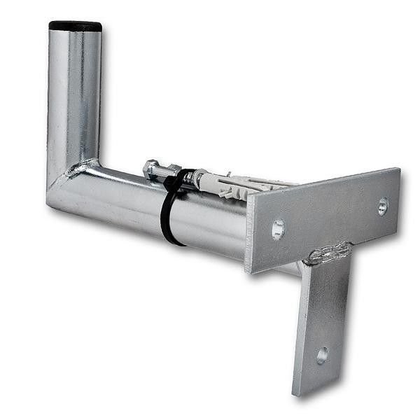 Wall holder for antennas. Distance from the wall 20 cm. Tube diameter 32 mm. Included are 3 screws (hex head) and dowels.