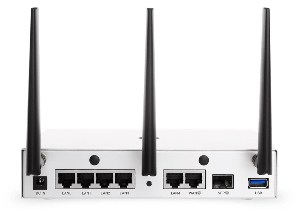 Interface: 5x GbE RJ-45 LAN, 1x GbE RJ-45 WAN, 1x 2.5G SFP slot (combo with RJ-45), 2x USB 3.0 type A