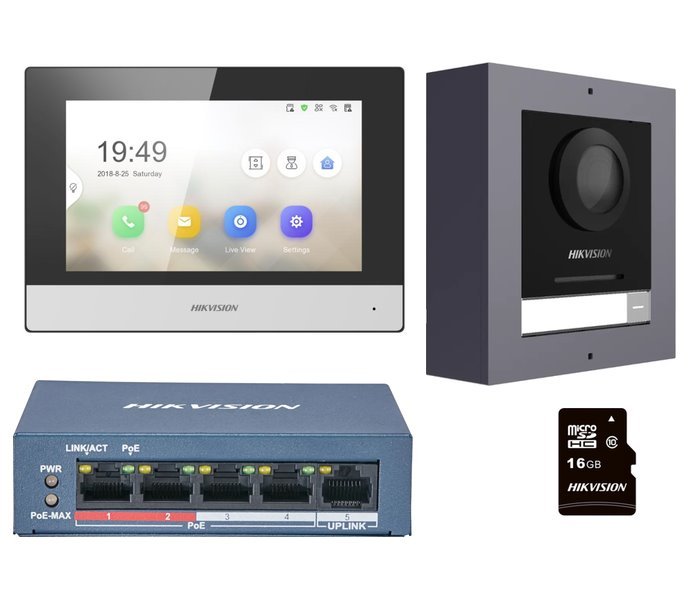 Hikvision DS-KIS602(B) - Kit IP videotelefonu, bytový monitor + dveřní stanice + switch + microSD