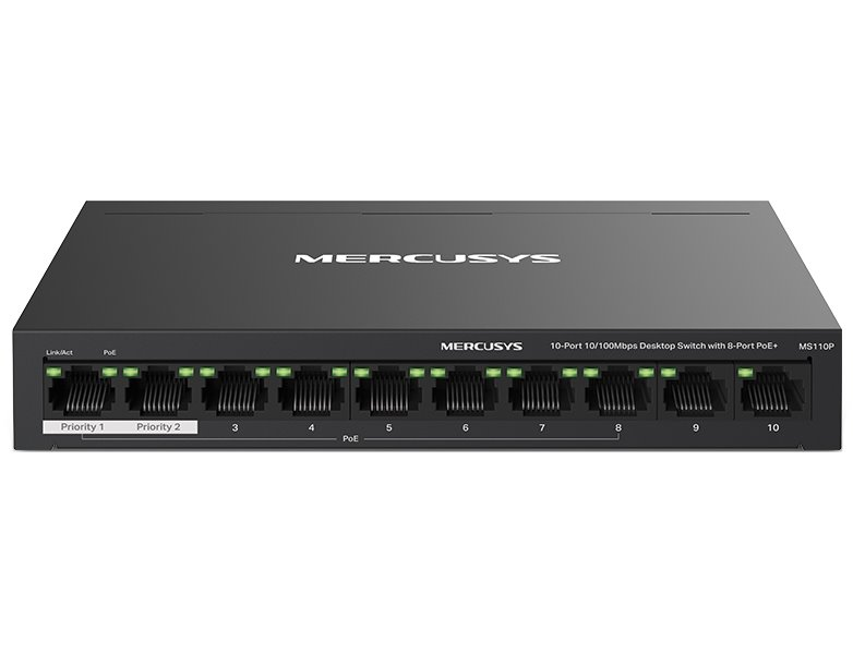 10-Port 10/100Mbps Desktop Switch with 8-Port PoE+