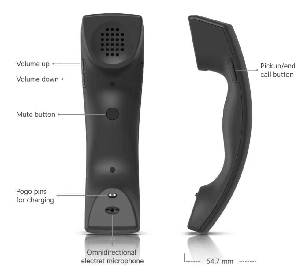 Handset microphone: omnidirectional, SNR 70 dB, sensitivity -38 ±3 dB