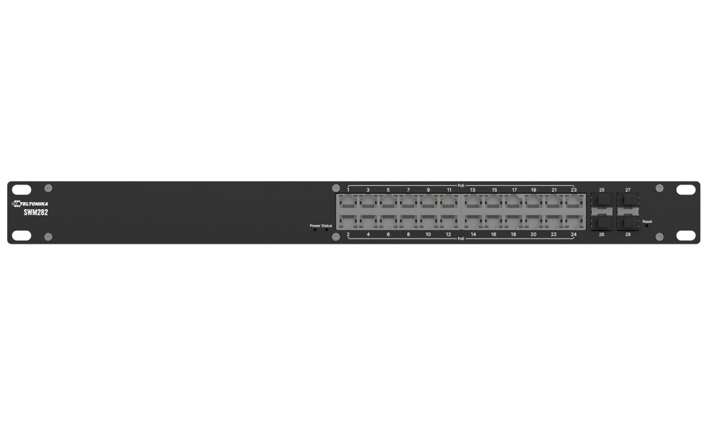 The SWM282 is a top-tier network switch combining 24 PoE+ ports delivering up to 30 W per port with a total PoE budget of 300 W, plus 4 SFP ports for fiber connectivity. The switch supports advanced industrial protocols PROFINET, MRP, and EtherNet/IP, making it an ideal solution for mixed industrial environments.